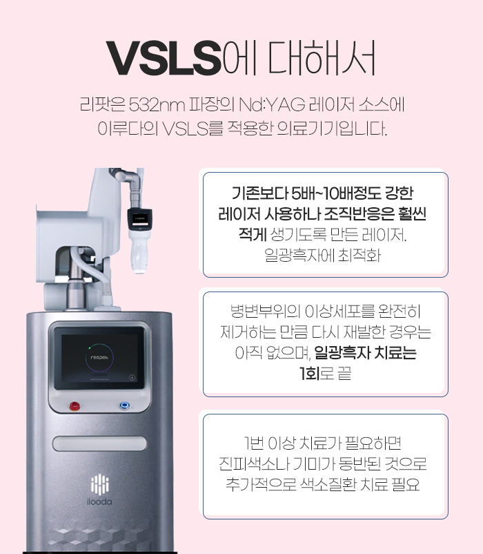 그래서 증산동 리팟레이저를 사용하게 되는 것인데요. 532nm 파장의 엔디야그 레이저 소스에 이루다의 VSLS를 적용한 의료 기기를 말한답니다. 기존보다 5~10배 정도 강한 레이저를 사용하고 있고 조직 반응은 훨씬 적게 생기도록 만들어졌는데요. 그래서 흑자에 가장 적합합니다.