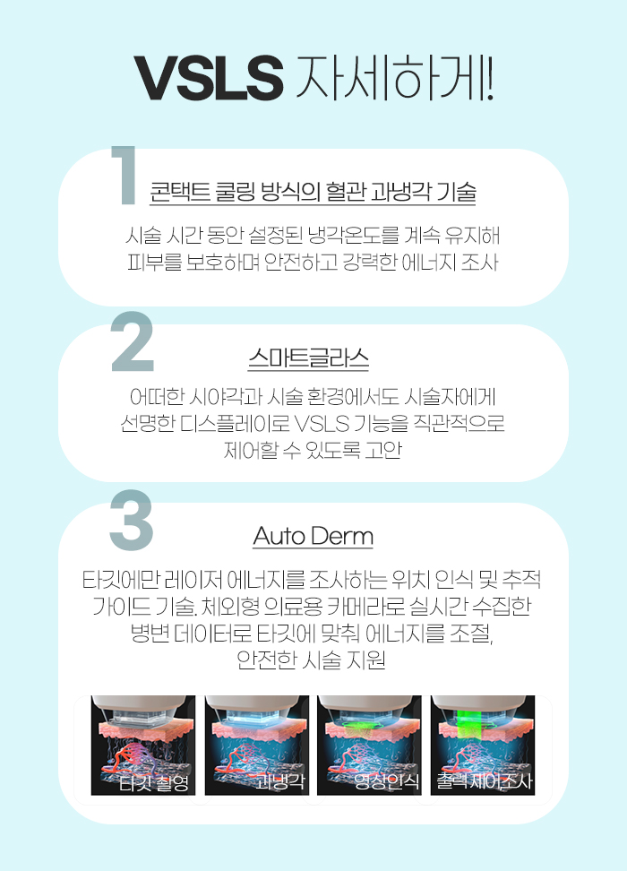 그래서 VSLS 리팟을 찾으시는 분들이 많은데요. VSLS 리팟은 532nm 파장의 엔디야그 레이저 소스에 이루다의 VSLS를 적용한 의료기기랍니다. 기존보다 5배에서 10배 정도 강한 레이저를 사용하고 있고, 조직 반응이 훨씬 적게 생기도록 만들어진 만큼 흑자에 가장 적합한 기기인데요.