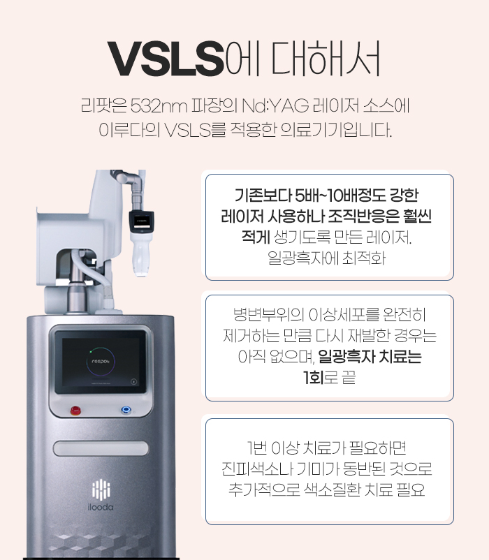 또 진관동 리팟레이저가 이렇게 흑자 치료에 도움을 줄 수 있는 이유는 시술을 받는 동안 설정되어 있는 냉각온도를 계속 유지하기 때문인데요. 그동안 피부를 보호하면서 안전하고 강력하게 에너지를 조사할 수 있습니다. 또 어떤 시야각과 시술 환경에서도 시술자에게 선명한 디스플레이로 VSLS 기능을 직관적으로 제어할 수 있게 고안되어 있답니다.
