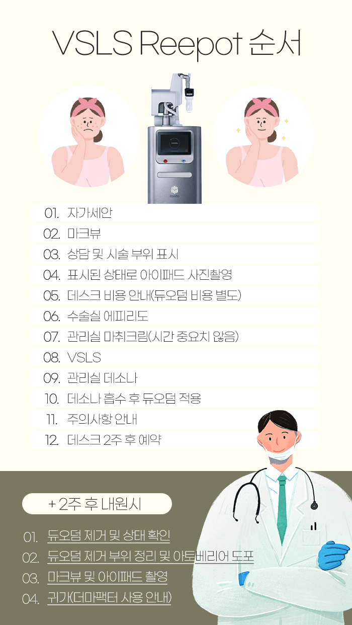 또 이렇게 VSLS 리팟을 시술하게 될 때는 먼저 세안을 한 뒤 마크뷰를 하게 되는데요. 그 후 상담을 하고 나서 시술받을 부위를 표시하게 됩니다. 그리고 표시가 된 상태로 아이패드를 이용해 사진 촬영을 하고 수술실에서 에피리도를 한 뒤 관리실에서 마취크림을 바르는데요.