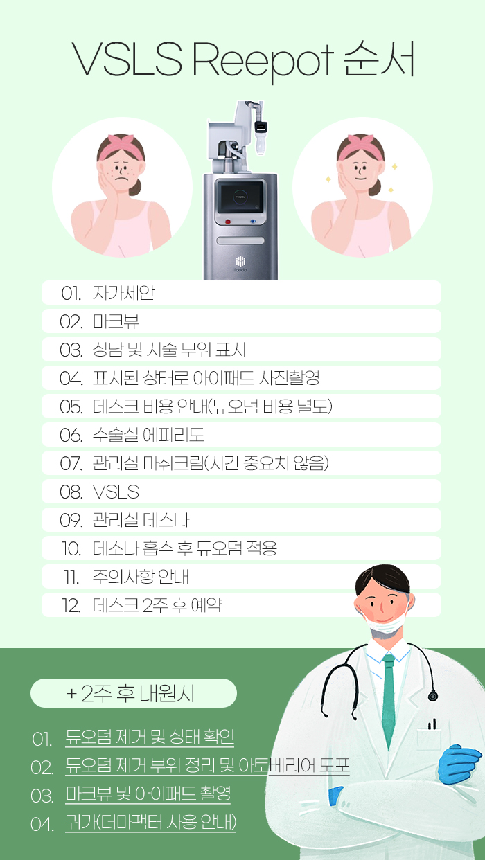 그렇기에 VSLS 리팟을 찾게 되는 것인데요. 532nm 파장의 엔디야그 레이저 소스에 이루다의의 VSLS를 적용한 의료기기를 말한답니다. 기존보다 5배에서 10배 정도 강한 레이저를 사용하고 있으면서도 조직 반응이 아주 적게 생기도록 만들어졌는데요. 그래서 흑자에 가장 적합한 기기라고 말씀드릴 수 있습니다.