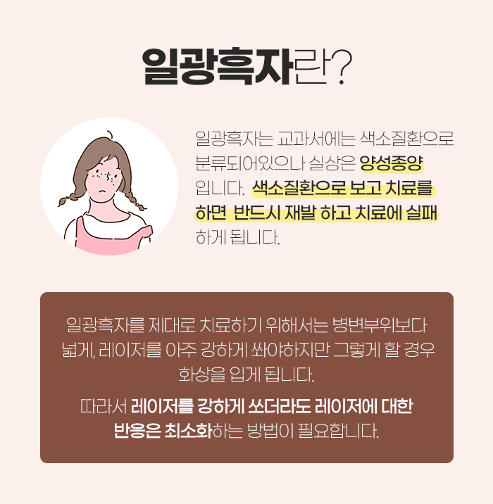 그런 만큼 진관동 흑자를 제대로 치료하는데 도움을 받고자 한다면 병변 부위보다 레이저를 넓게, 아주 강하게 쏘아야 합니다. 그러나 레이저를 강하게 쏘게 되면 화상을 입게 되는데요. 그래서 레이저를 강하게 쏘기도 해야 하지만 레이저에 대한 반응을 최소화시키도록 해야 합니다.
