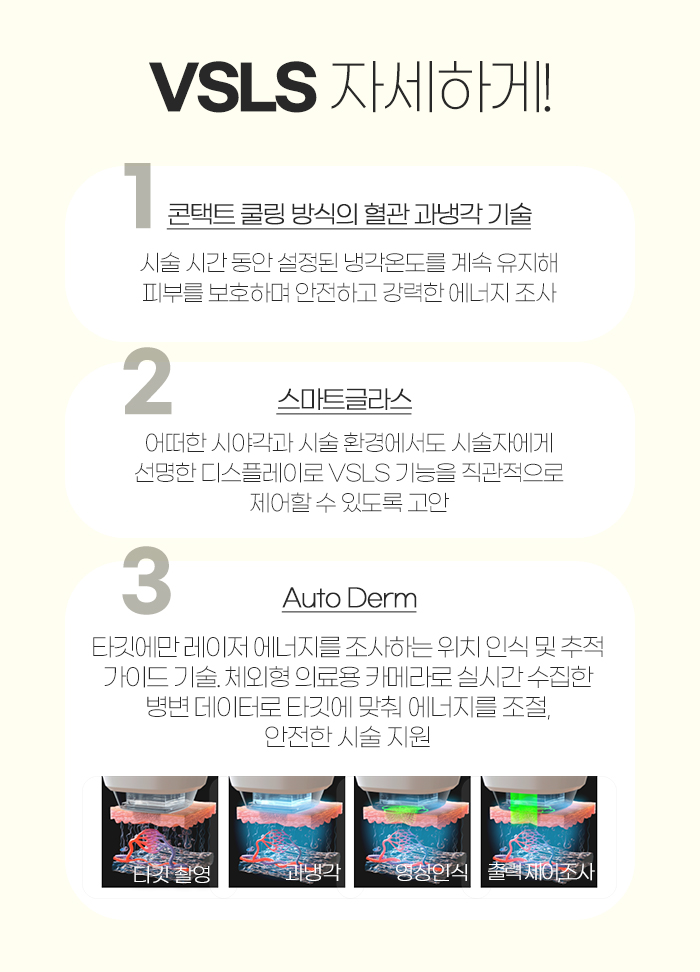 그리고 VSLS 리팟이 이렇게 도움을 줄 수 있는 이유는 콘택트 쿨링 방식의 혈관 과냉각 기술과 스마트 글라스, Auto Derm 기술을 가지고 있어서인데요.